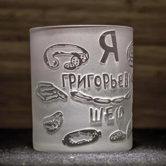 Іменна склянка для віскі з гравіюванням шкали і тексту привітання на дві сторони