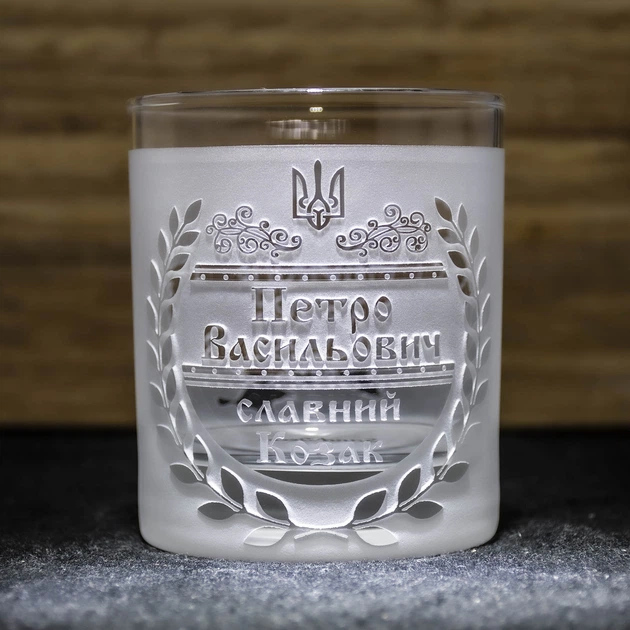 Іменна склянка для віскі з гравіюванням на дві сторони Славний Козак
