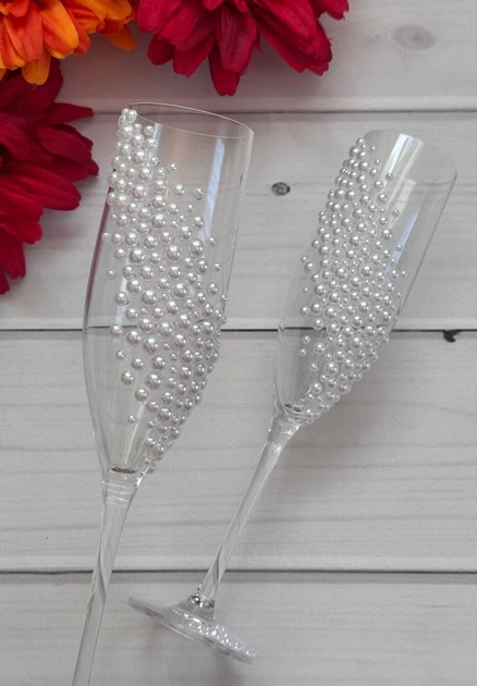 Весільні бокали пара білого кольору перлини білі