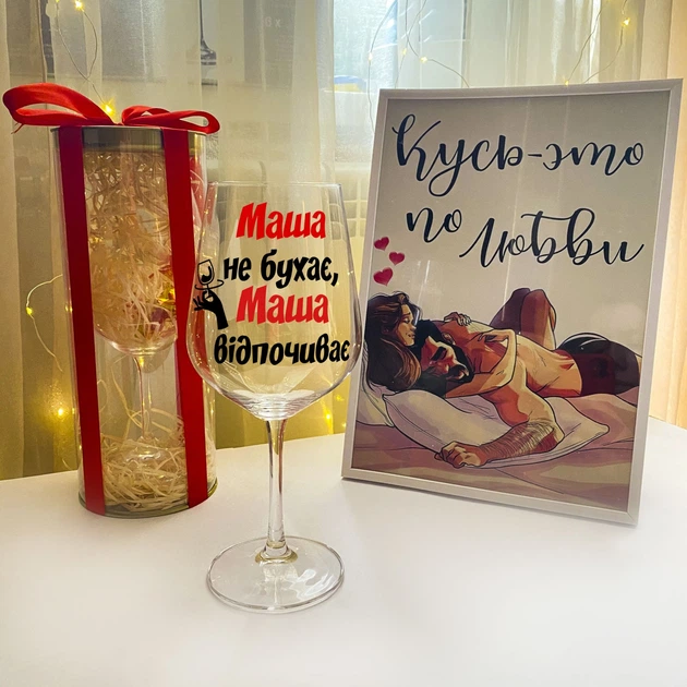 Бокал для вина з написом "Маша не бухає, Маша відпочиває" з подарунковою упаковкою (ART153)