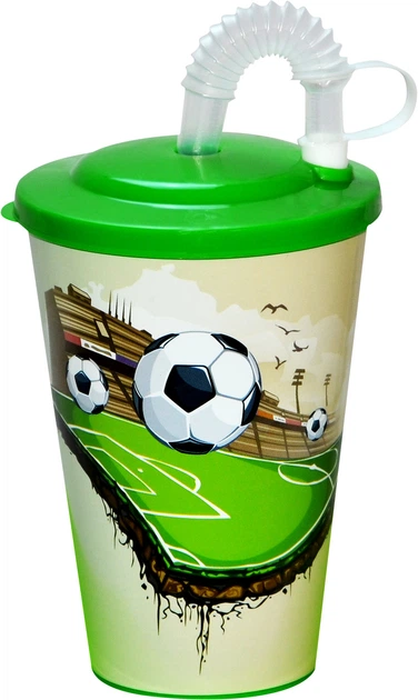 Склянка з трубочкою та кришкою AKAY Plastik, 5.5х12см, Туреччина, Футбол, AK 625