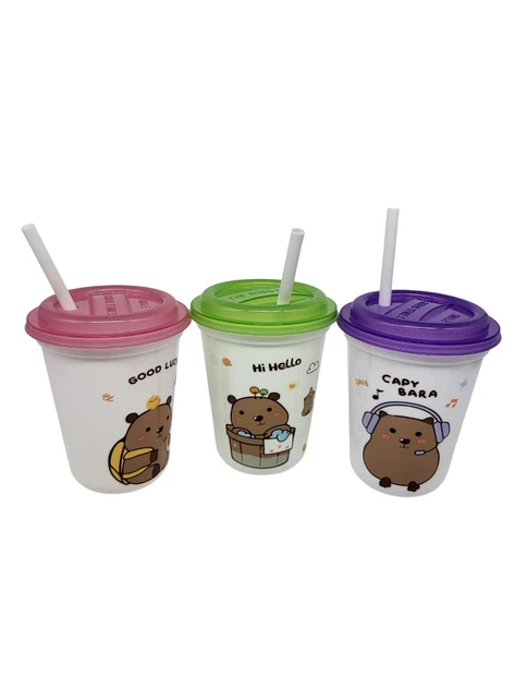 Набір стаканів пластикових із соломинками 1*3шт "Капібара"