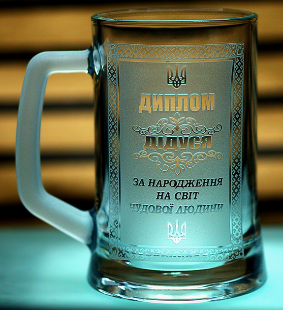 Пивний келих 670 мл з гравіюванням Диплом Дідусю подарунок дідусеві кухоль для пива