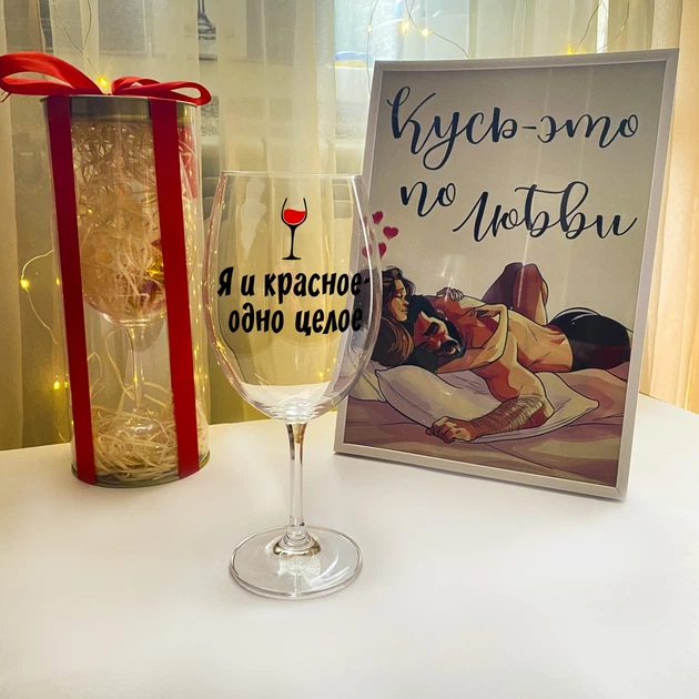 Келих для вина з написом "Я і червоне одне ціле" в подарунковій упаковці (ART496)