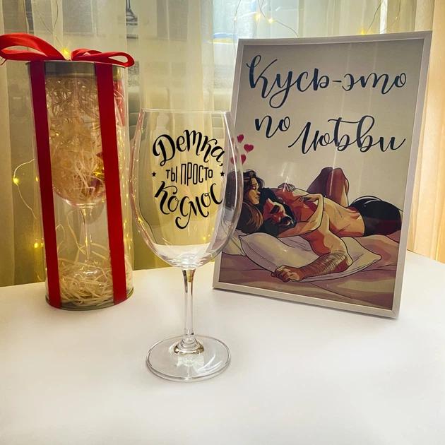 Келих для вина з написом у подарунковому оформленні (ART215)