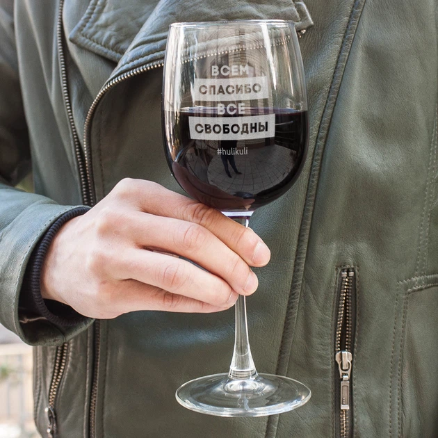 Бокал для вина "Всім дякую всі вільні" у дерев'яній подарунковій коробці, (російська) 4598939