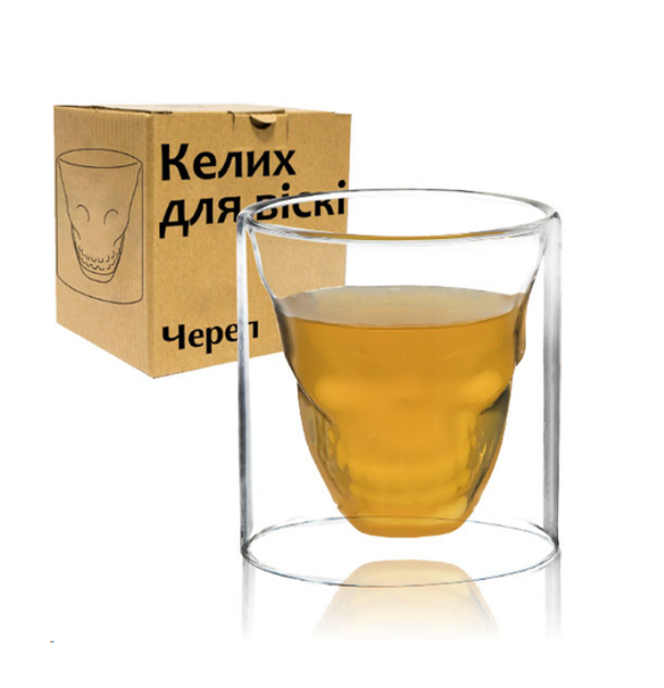 Склянка для віскі SNT Череп, 200 мл, боросилікатне скло, подвійні стінки (KG-12871)