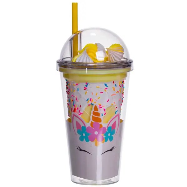 Склянка багаторазова з кришкою та трубочкою, жовтий (HP-18-1Y) (WB)