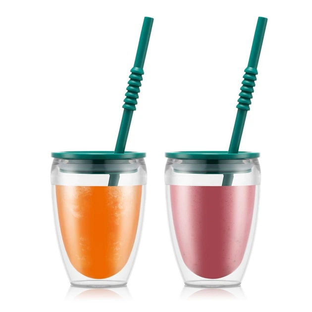 2 склянки PAVINA з подвійними стінками, 0,3 л, з кришкою та трубочкою BODUM K11849-447SA-447-Y21