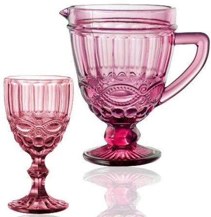 Набір для напоїв Elodia "Вінтаж" 6 фужерів та глечик, рожеве скло 340 мл, 1,15 л S&T 000263583