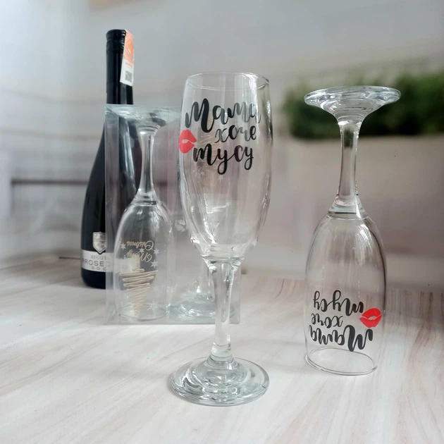 Подарунковий набір келихів для шампанського "Мама хочу тусу" в акриловій упаковці