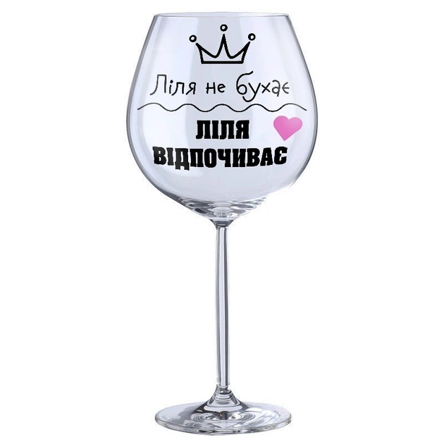 Винний бокал з написом Just Print It Ліля не бухає Ліля відпочиває 1, скло, 750 мл