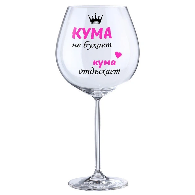 Винний бокал з написом Just Print It Кума не бухає кума відпочиває, скло, 750 мл