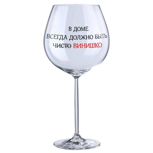 Винний бокал з написом Just Print It У будинку завжди повинно бути чисто, скло, 750 мл