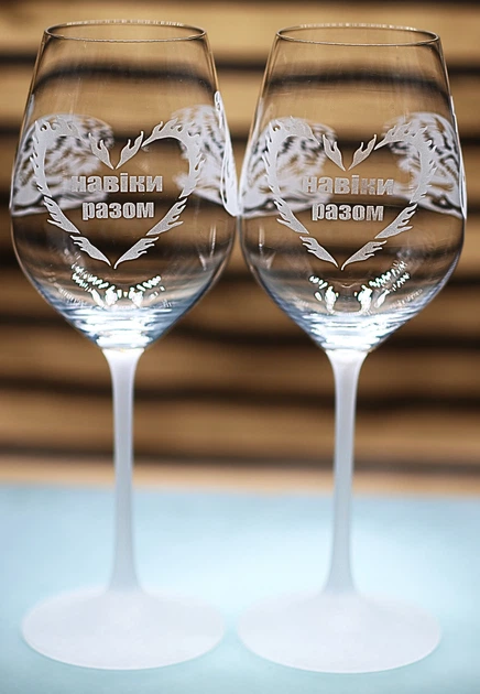 Набір винних келихів 480 мл з гравіюванням Лебеді весільні фужери подарунок на річницю для коханих
