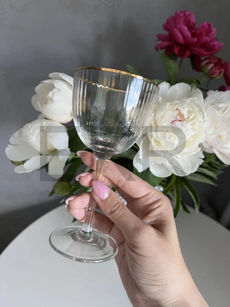 Бокал для вина ребристий із золотим обідком 160 мл EK9062