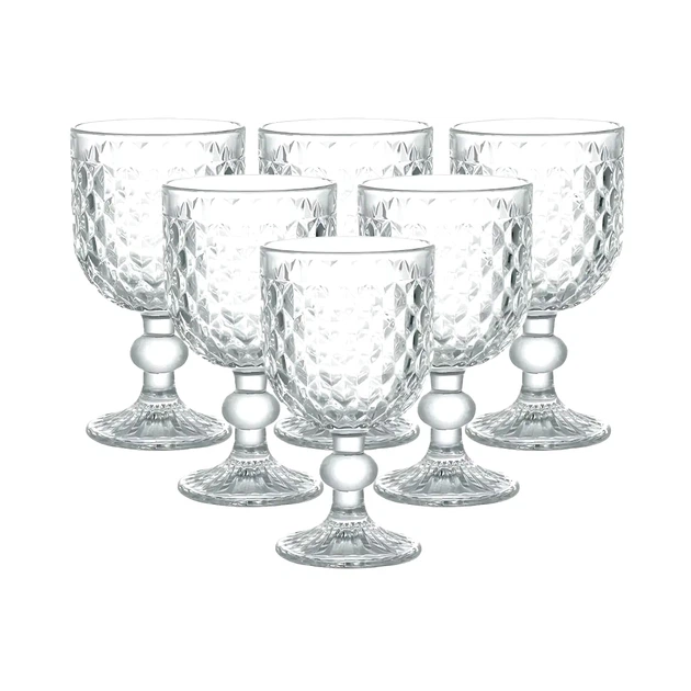 Келихи для червоного вина 6 штук на низькій скляній ніжці з геометричним візерунком для подачі напоїв (523163)