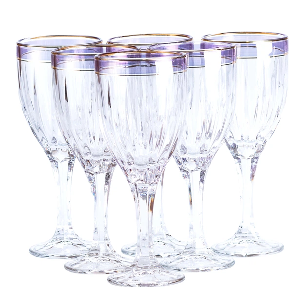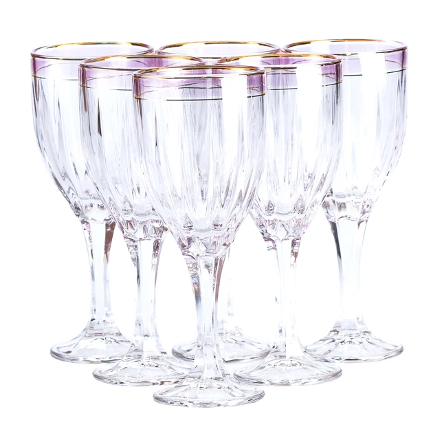 Келихи для вина із золотою облямівкою 6 шт 250 мл Рожеві скляні келихи для червоного білого вина (523194)