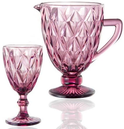 Набір для напоїв Elodia "Грани" 6 фужерів та глечик, рожеве скло 320 мл, 1,1 л S&T 000263581