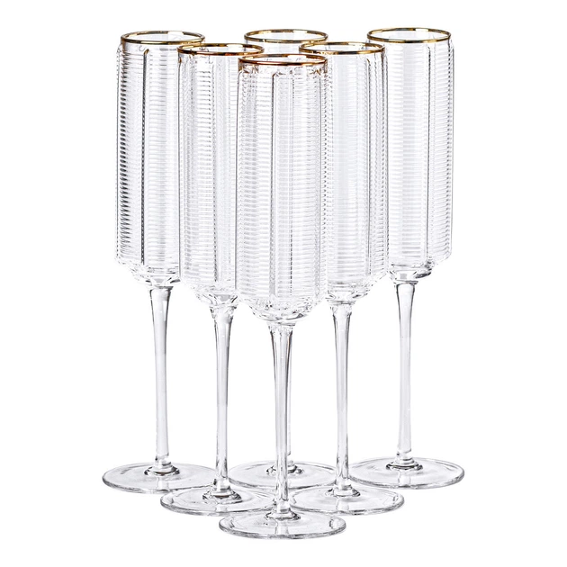 Набір келихів для шампанського 6 шт 250 мл золота облямівка скляні келихи для святкового столу (523195)