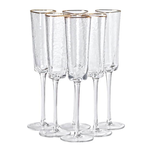 Набір келихів для шампанського 6 штук по 250 мл із золотою облямівкою, Для шампанського