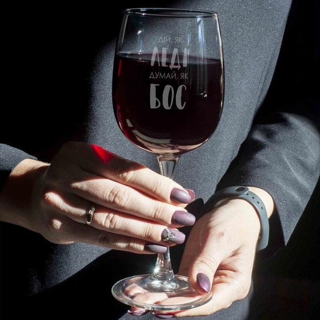 Келих для вина "Дій, як леді. Думай, як бос" у крафтовій коробці