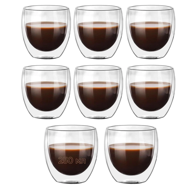 Набір склянок з подвійними стінками для кави, чаю 8х250 мл, склянки з подвійним дном термостійкі