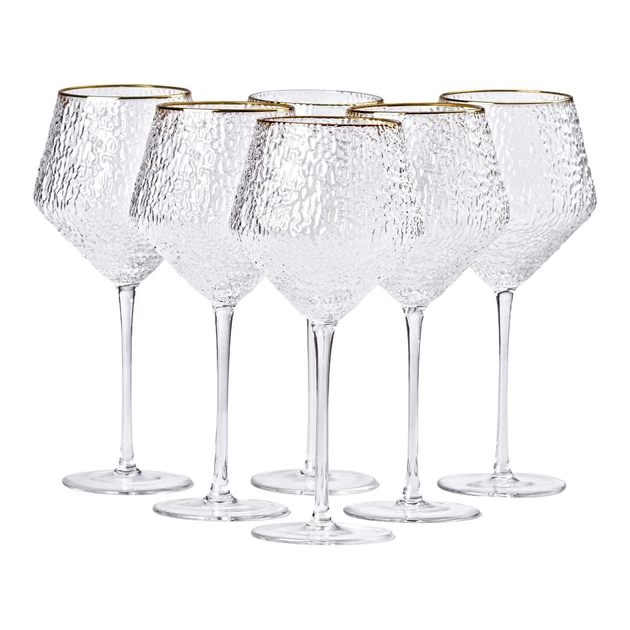 Набір фактурних келихів 600 мл з тонкою ніжкою, комплект з 6, для вина, Класичний посуд для святкових подій