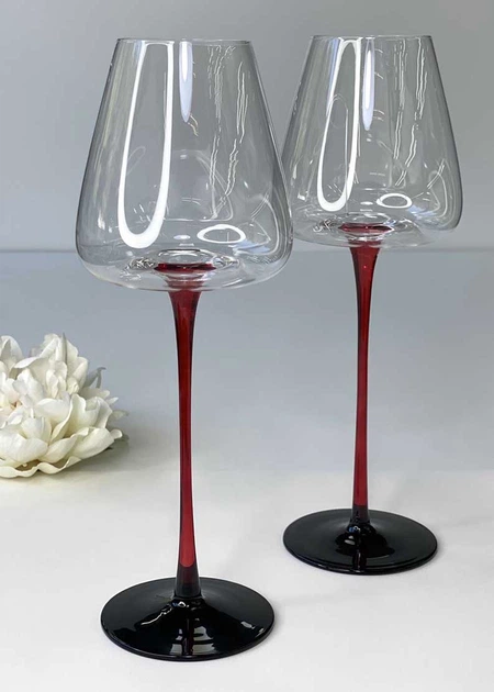 Набір високих келихів 6 шт. для вина 570 мл «Червоний стиль» прозорий із червоною ніжкою