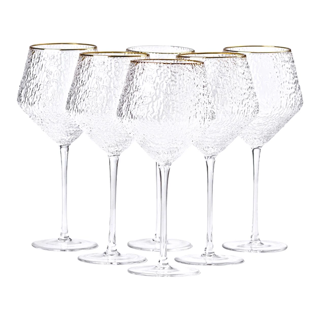 Набір фактурних келихів 600 мл для вина 6 штук прозорі келихи з тонкою ніжкою для дегустації (523536)
