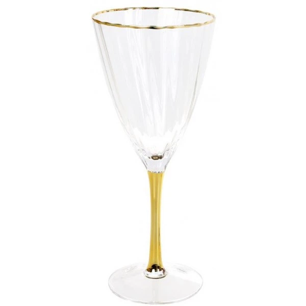 Келих для вина фігурний на ніжці прозорий ребристий із золотим обідком столовий набір 6 шт