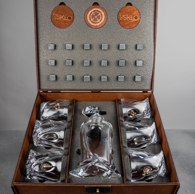 Сет для виски Boss Crystal «ГЕНЕРАЛЬСЬКИЙ», графін, 4 склянки, золото та срібло