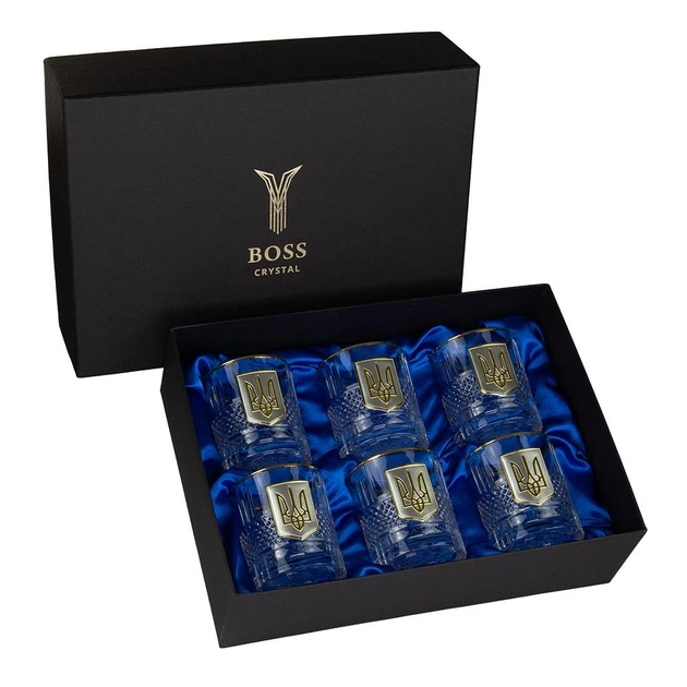 Набір бокалів для віскі «Тризуб» Boss Crystal, 6 бокалів, срібло, золото, хрусталь, захисний лак