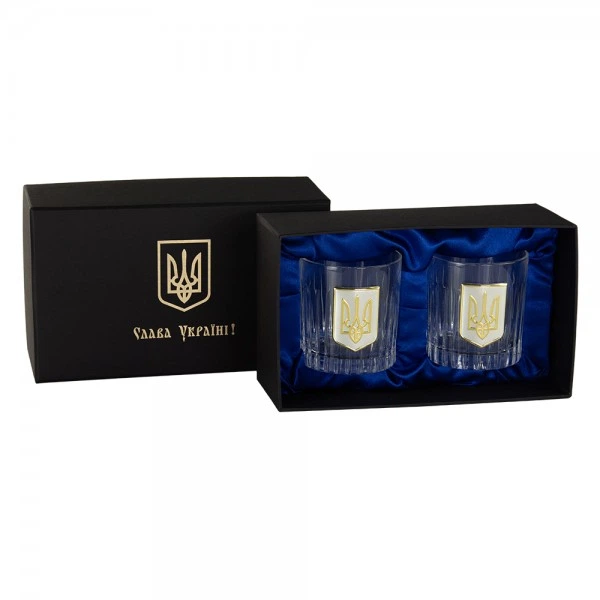 Набір бокалів для віскі "Тризуб" Boss Crystal, 2 бокали, срібло, золото, хрусталь