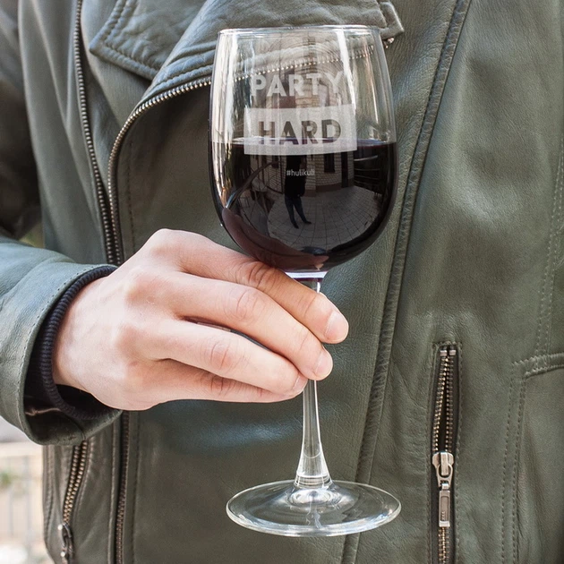 Келих для вина "Party hard" у дерев'яній подарунковій коробці з гравіюванням BeriDari (HK-st-08) 470 мл