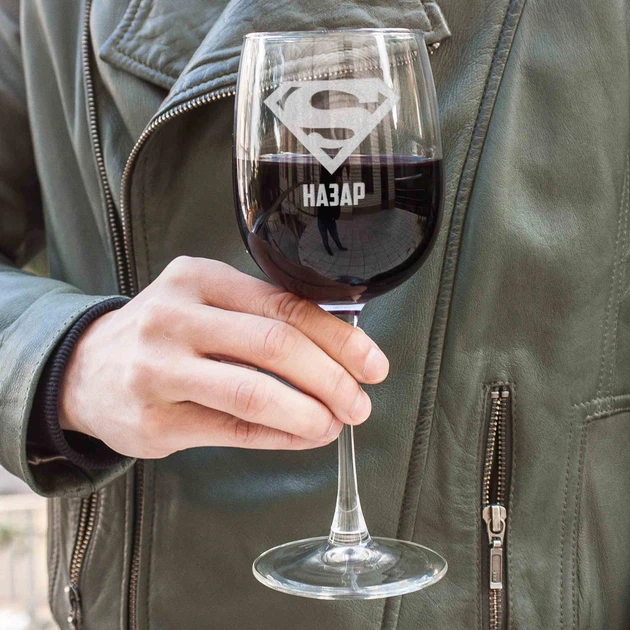 Бокал для вина "Superman" персоналізований, Дерев'яна подарункова коробка 4631912