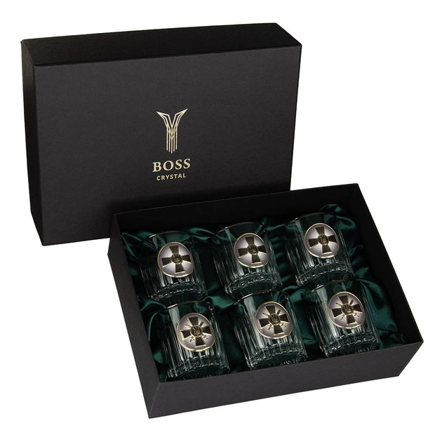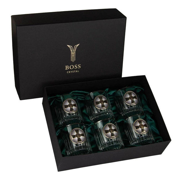 Набір склянок для віскі Boss Crystal Служба Безпеки України з платиновими, срібними та золотими накладками 6 предметів (B6SB