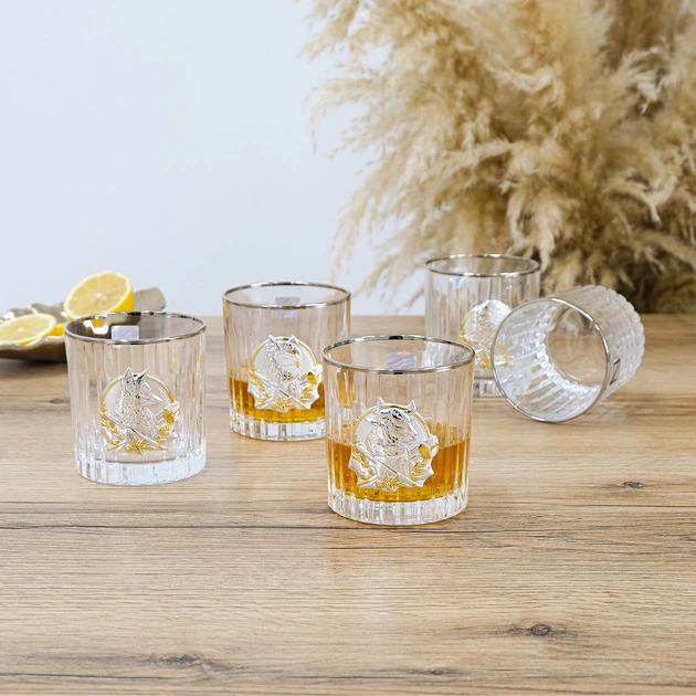 Сет хрустальних склянок "Лідер" (6 шт) накладки звірі золото Boss Crystal (GPBCR6GLD)