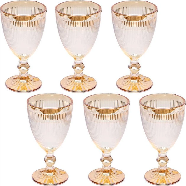 Келихи для вина коктейлів із кольорового скла «Золото» Набір 6шт Об'єм 200мл, висота келиха 15см