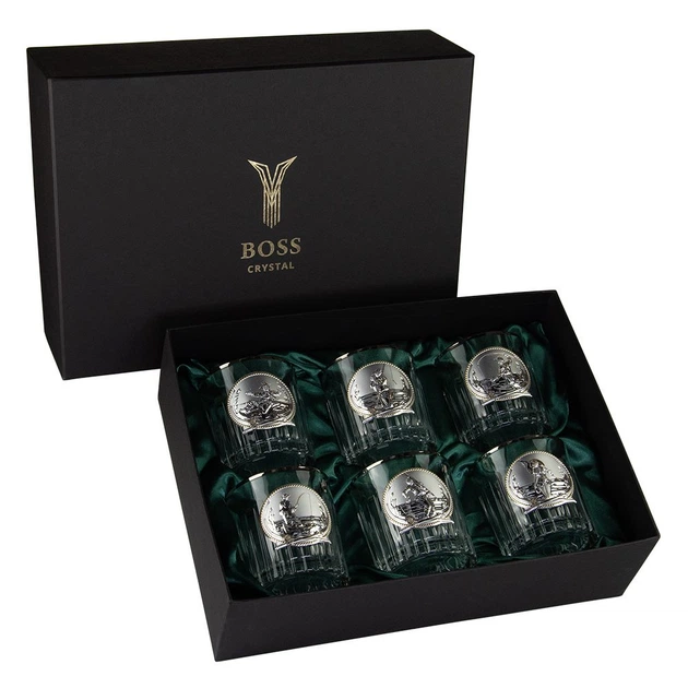 Набір для виски "FISHERMAN" (6 шт. бокалів) хрусталь, золото, срібло Boss Crystal (GPB6FMN2PGD)