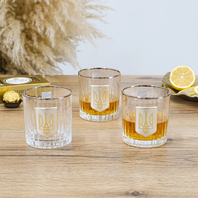 Набір стаканів для віскі Boss Crystal Тризуб із платиновими, золотими та срібними накладками