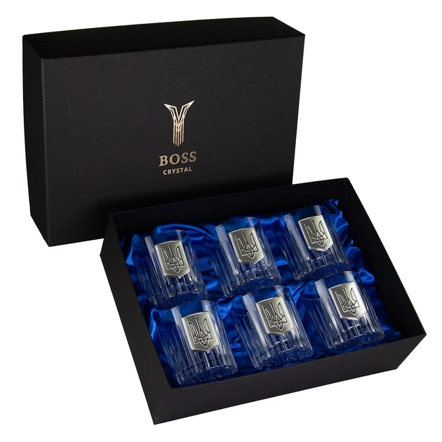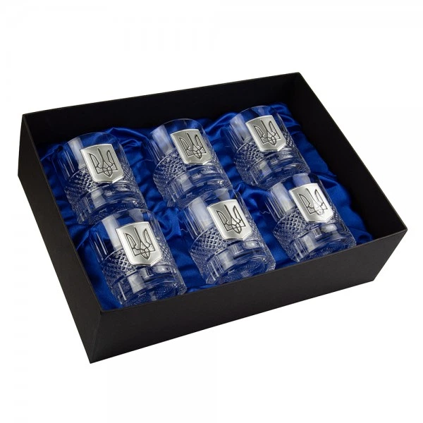 Набір бокалів для віскі "Тризуб" Boss Crystal, 6 бокалів, срібло, хрусталь