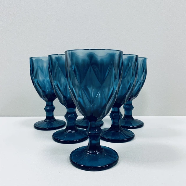 Набір скляних келихів для вина 6 шт 350 мл A-Plus 2257 блакитні