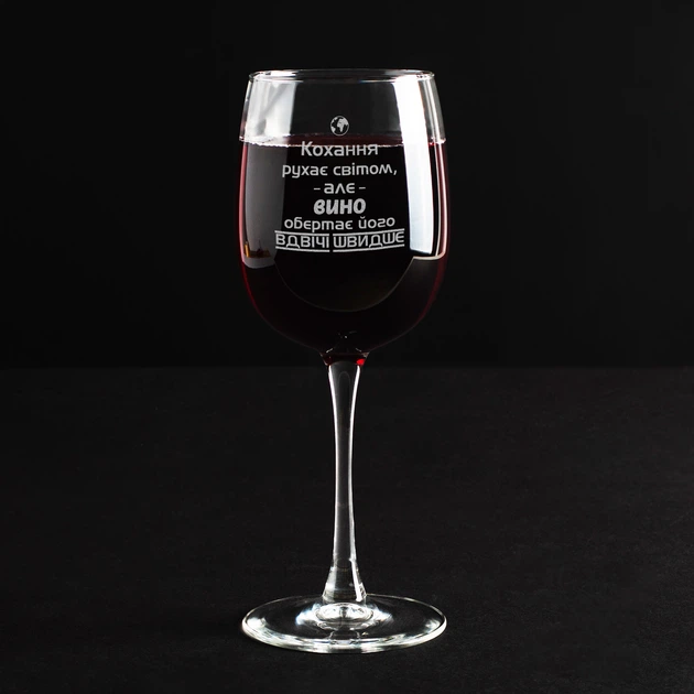 Келих для вина "Кохання рухає світом" у дерев'яній подарунковій коробці з гравіюванням BeriDari (BD-BV-132) 470 мл
