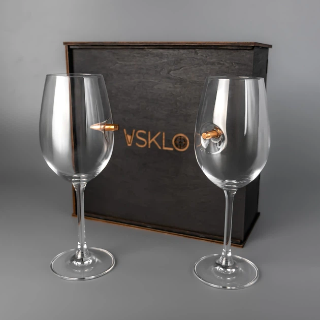 Бокали для вина з гербом на подарунок військової ЗСУ | Дерев'яна коробка 225-001-155