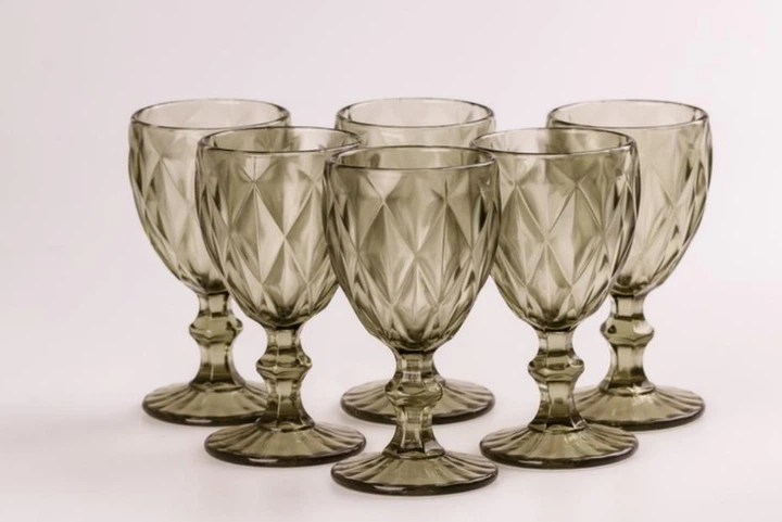 Набір келихів для вина TS Kitchen HP035GR з товстого скла гранованих фігурних 6 шт по 300 мл Зелений