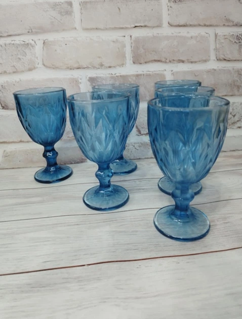 Набір келихів для вина TS Kitchen HP035BL з товстого скла гранованих фігурних 6 шт по 300 мл Блакитний