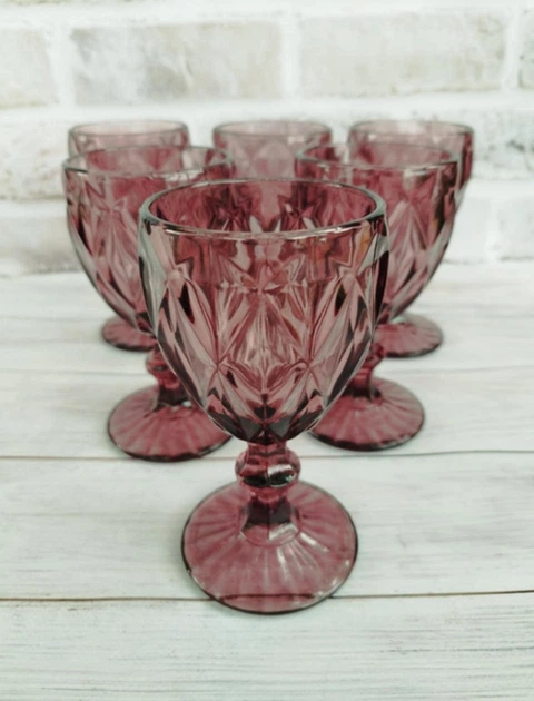 Набір келихів для вина TS Kitchen HP035P з товстого скла гранованих фігурних 6 шт по 300 мл Рожевий