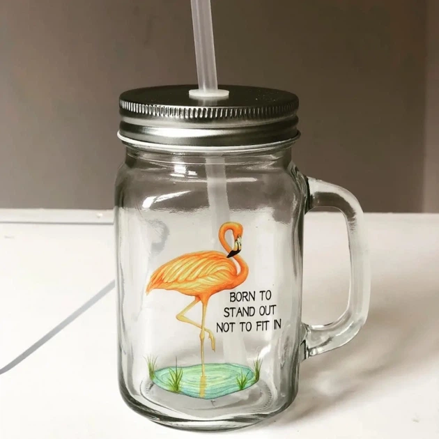 Банка з ручкою, кришкою та трубочкою Фламінго 450 мл