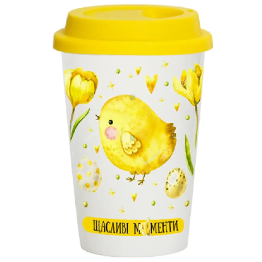 Склянка порцелянова Galleryglass Курча з силіконовою кришкою 410 мл біла (75001848)